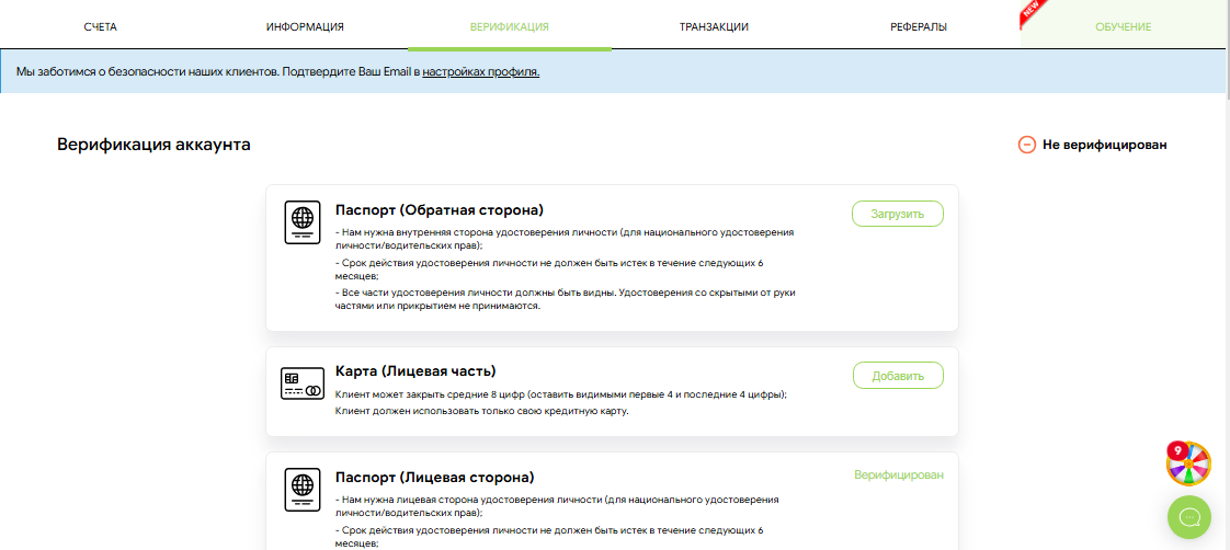 Если документ не нужен, то вместо кнопки “Загрузить” будет указано “Не требуется”.